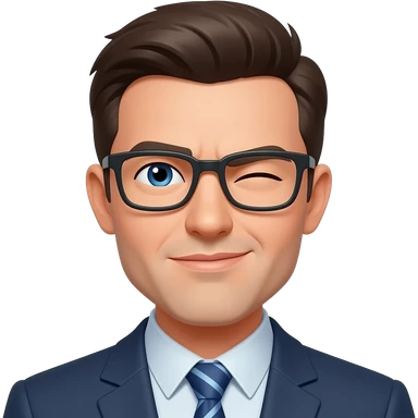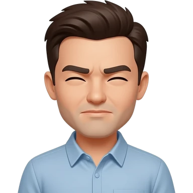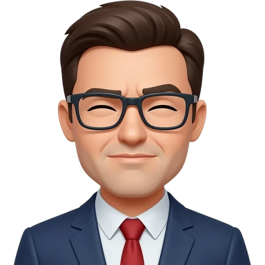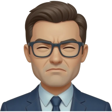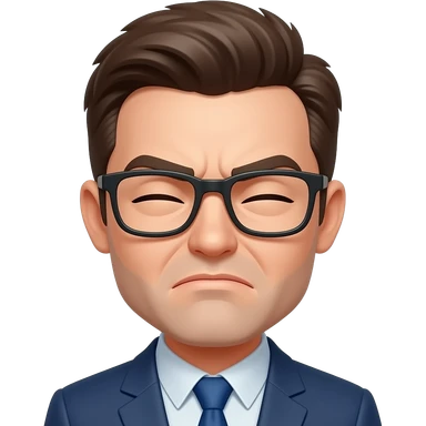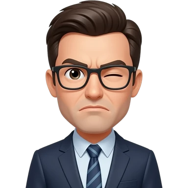 Make a white guy with slicked back short black hair, glasses and a snide squinting look emoji