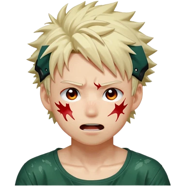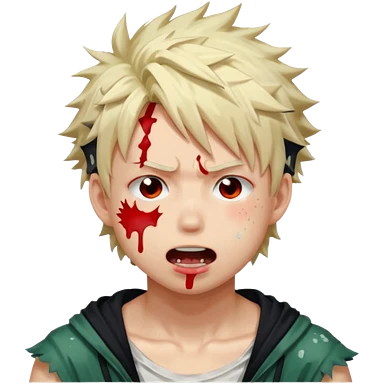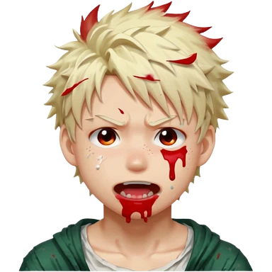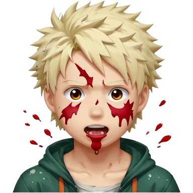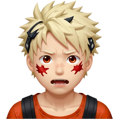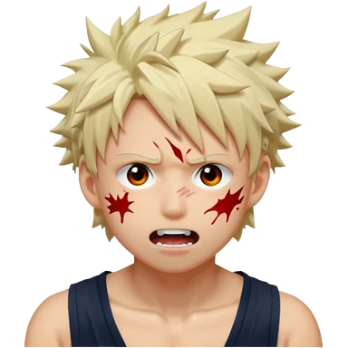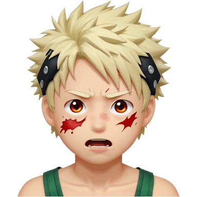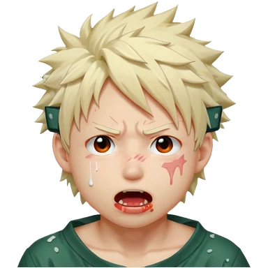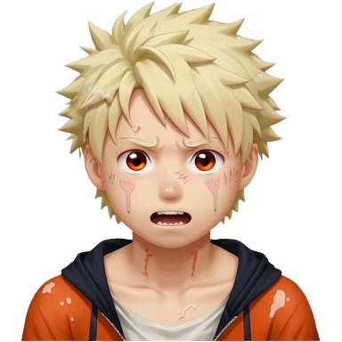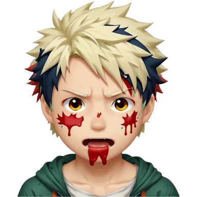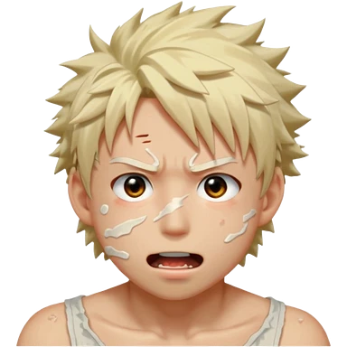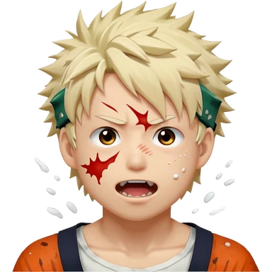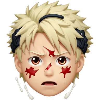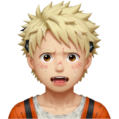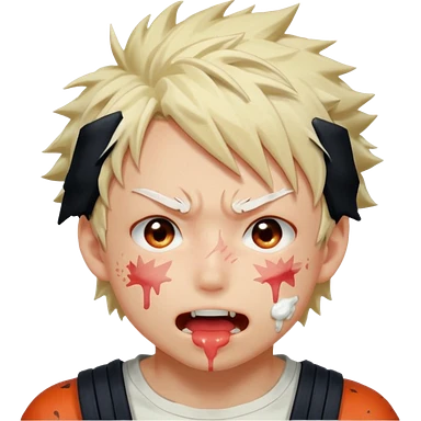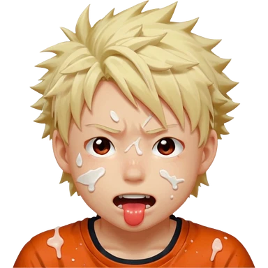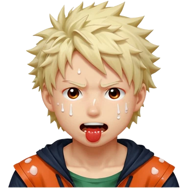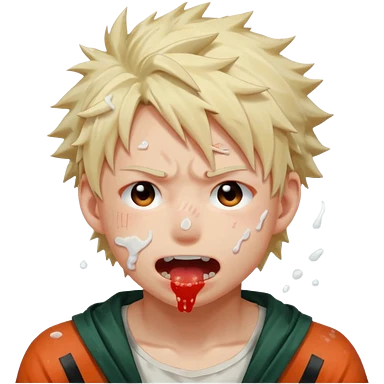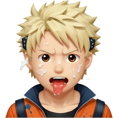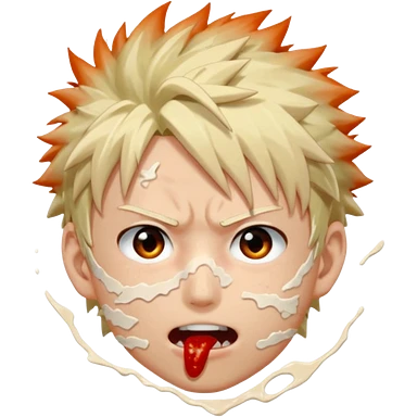 Katsuki Bakugo with his eyes rolled back and his eyebrows tilted back. His face showing physical delight and lust. Just face is flushed and white glue splattered around his mouth. emoji