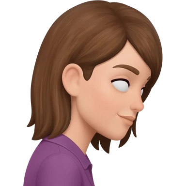 From a side profile view. Make her head lean even more forward and make it a girl with long brown curly hair and bangs and a septum nose ring gold hoop emoji