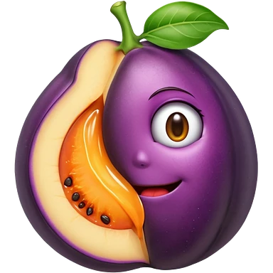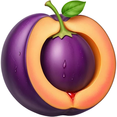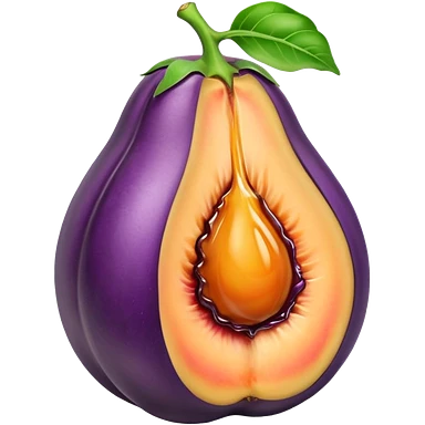 Eggplant stuck inside the crack of a peach wit h juices emoji