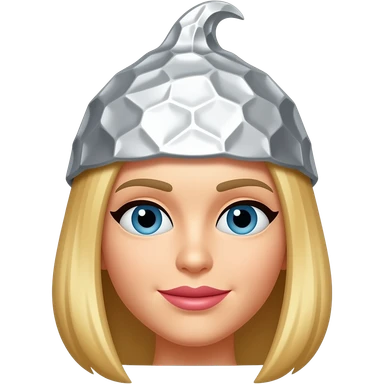 Female blonde Emoji wearing a tin foil hat emoji