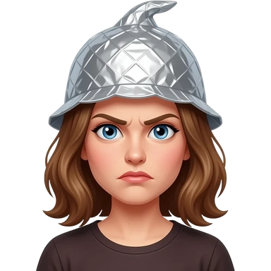 Female surly hair Emoji wearing a tin foil hat emoji