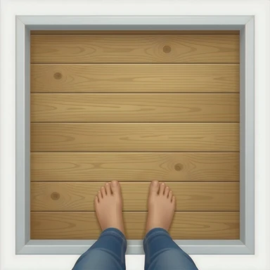 ceiling with exposed floorboards and feet seen standing on the above floor through one of the floorboard gaps emoji