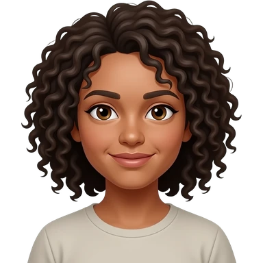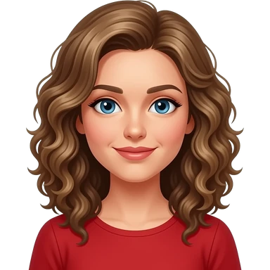 Eine Frau mit dunkelblonden locken und dunkelblauen Augen, mit einem roten Top emoji