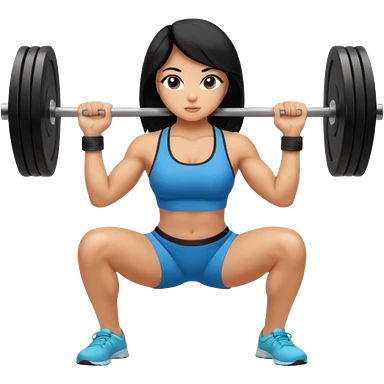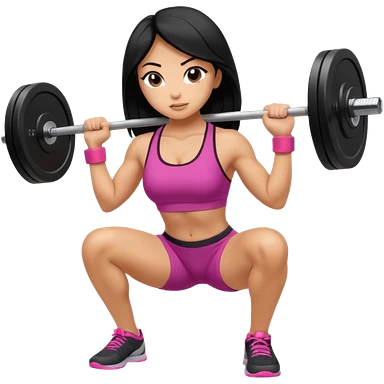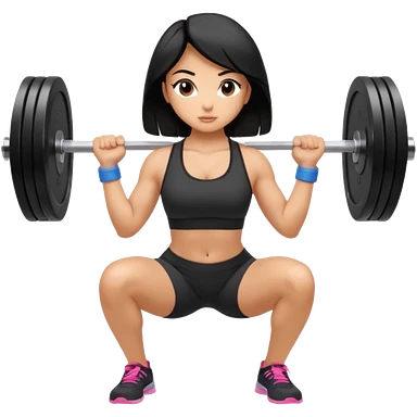 Fitness girl doing the squat with bar and weight, black hair emoji