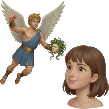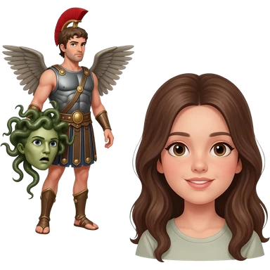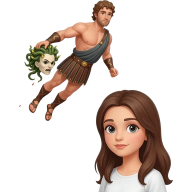Perseus was winging his way back to Greece with the head of Medusa and spotted the girl (she has long brown hair) emoji