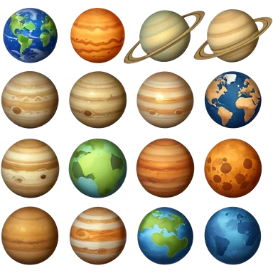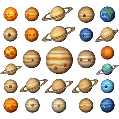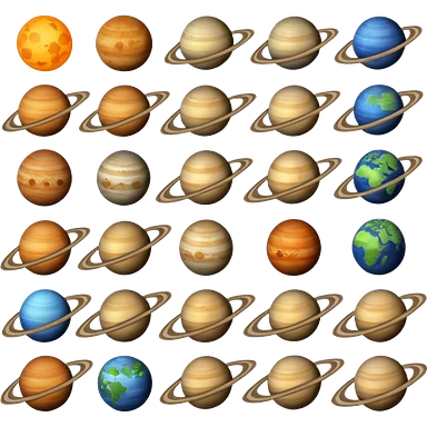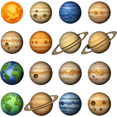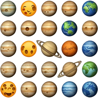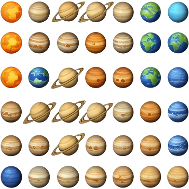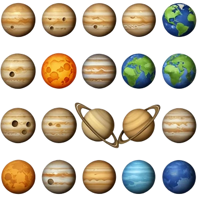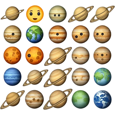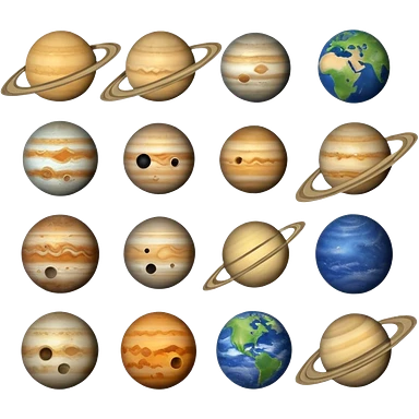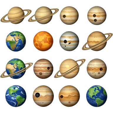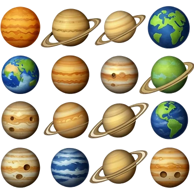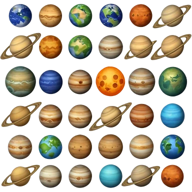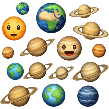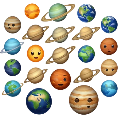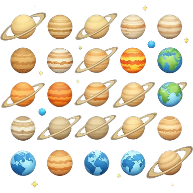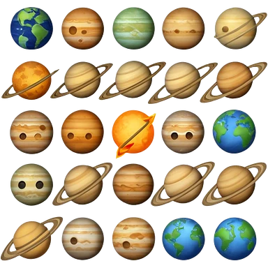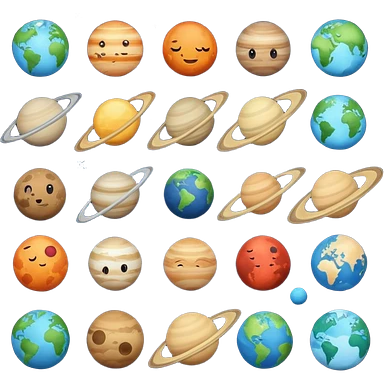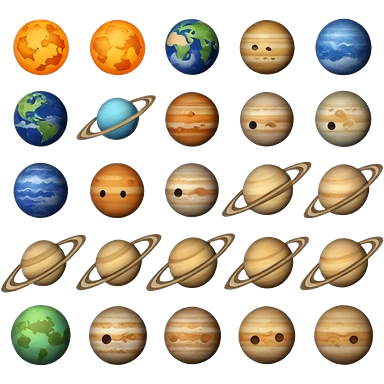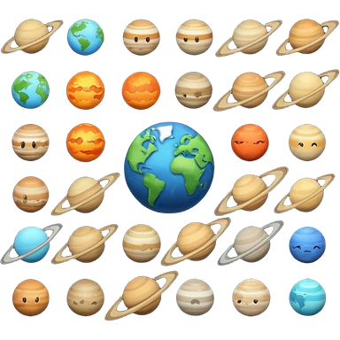 12 planets emojis I need a labeled and a ine for each planet :mercury, Venus , earth , mars, Jupiter Saturn, Neptune, Pluto, Uranus emoji