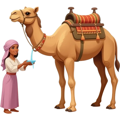 A women giving water to camels in the desert region emoji