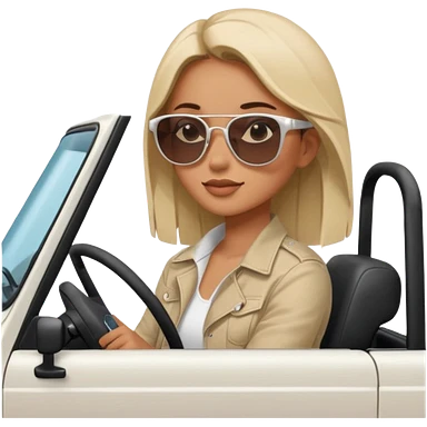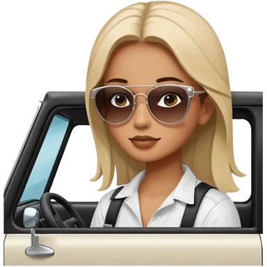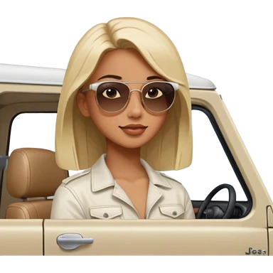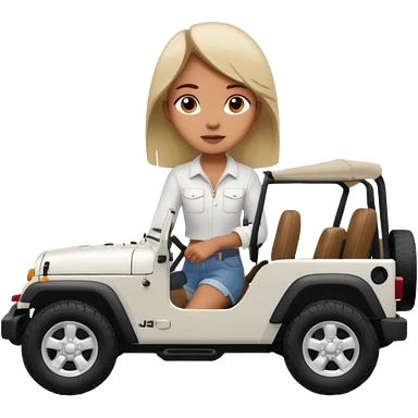 make the jeep white color, show a 45 degree angle and the girl giving a side look emoji