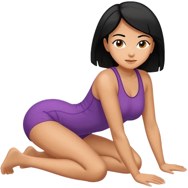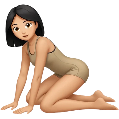 Tan woman with black hair pushing butt outward bent at waist emoji