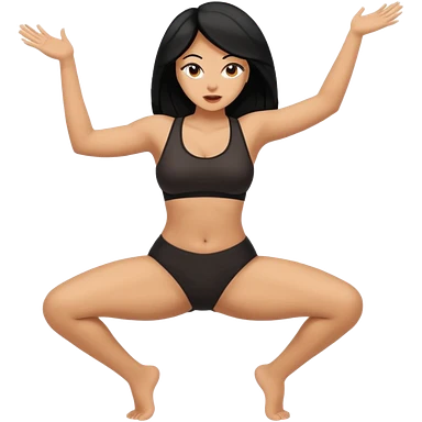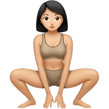 Tan woman with black hair with hands on knees, knees bent, arched back, big butt emoji
