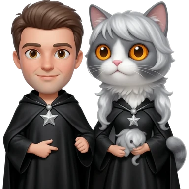 magician couple and their pet cat emoji