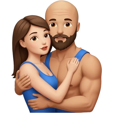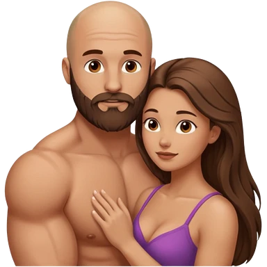 Hyper realistic Muscular Bald beard men with his wife long brown hair emoji
