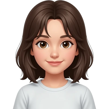 Emo Latina girl with volumized short dark brown hair swept In a side part, intense eyeliner and lashes, and pink shirt emoji