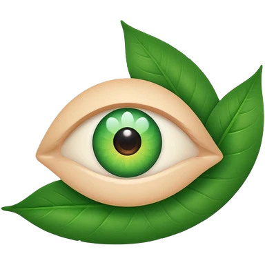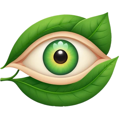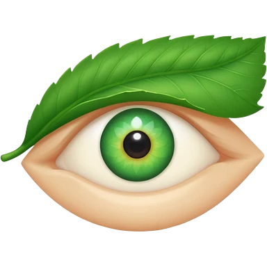 A minimalist, slightly winking eye emoji with a vibrant green leaf serving as the upper eyelid, and a tiny, sparkling white glow in the pupil. Clean, vector style. Transparent background. For a YouTube channel focused on senior health. emoji