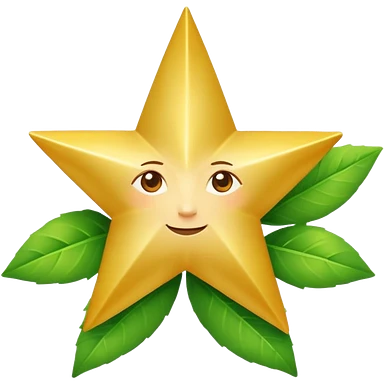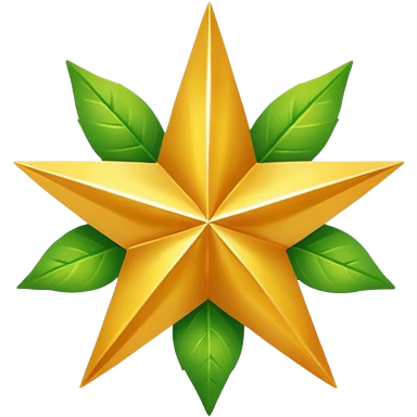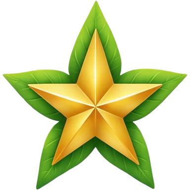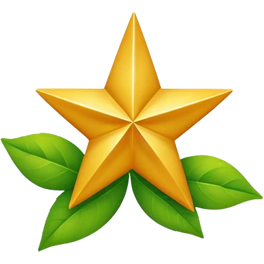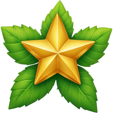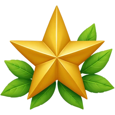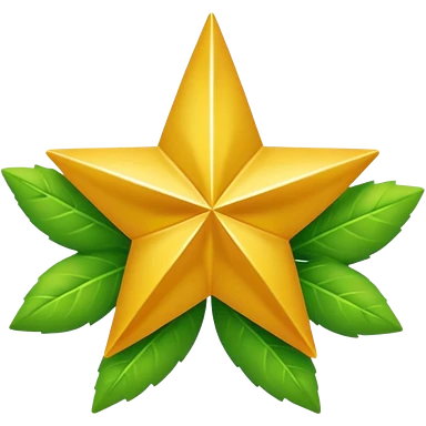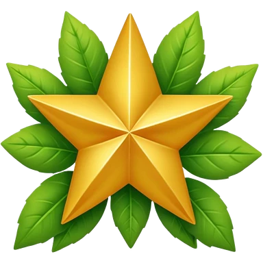 "A vibrant, golden five-pointed star emoji, with graceful green leaves subtly integrated into its points or wrapping around its base. The design should feel radiant and positive. Clean, vector-style, 32x32 pixel icon. Transparent background. Icon for achievement in health." emoji