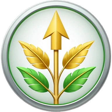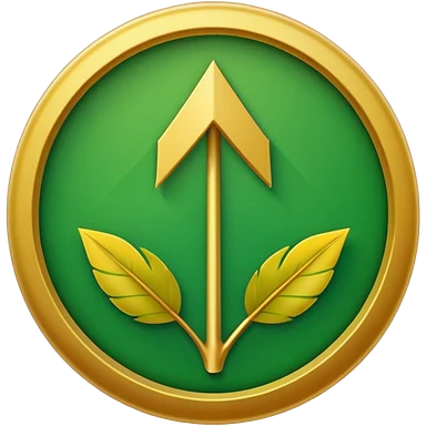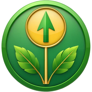 "A simple, strong, rounded arrow pointing upwards, encased within a circle made of two green, curved leaves. Use bright, contrasting colors (green and yellow/gold) for vitality. Minimalist 32x32 pixel emoji icon. Transparent background." emoji