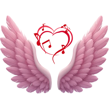 Deux ailes avec un cœur et des notes de musique emoji