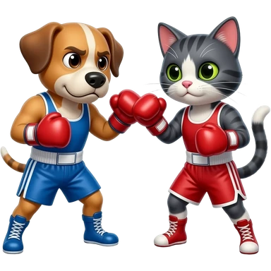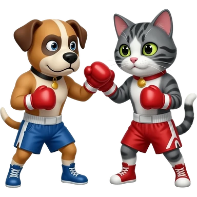 Cachorro forte pobre é feio vs Gato fraco rico é bonito em uma luta de boxe emoji
