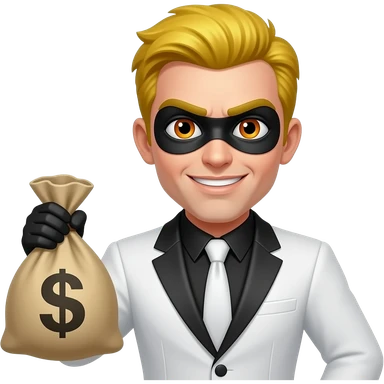 Robber Samsung version He holds a money bag, White and Black suit, Yellow hair and orange eyes emoji