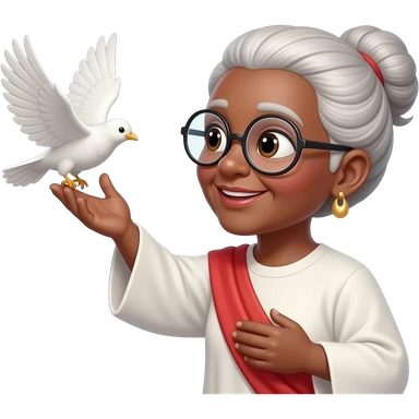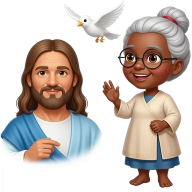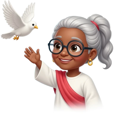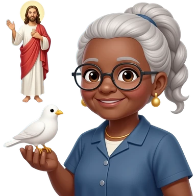 Vovó negra com óculos cabelo amarrado pássaro Branco voando pró céu com jesus emoji