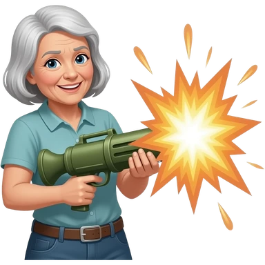 Vovó sendo acertada por uma bazooka emoji