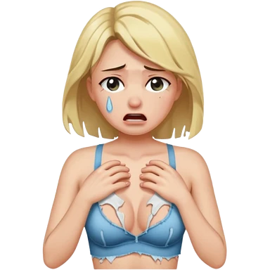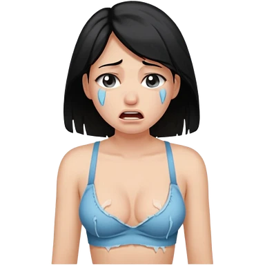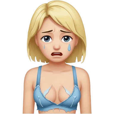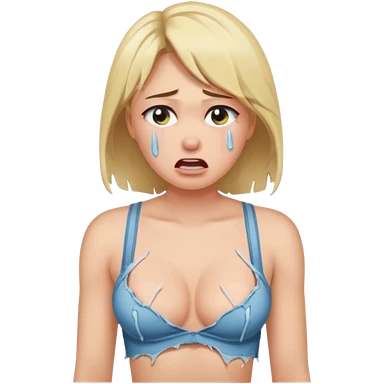 Mulher jovem chorando muito com as roupas rasgadas e sutiã aparente emoji