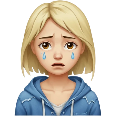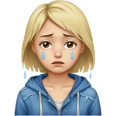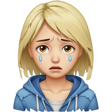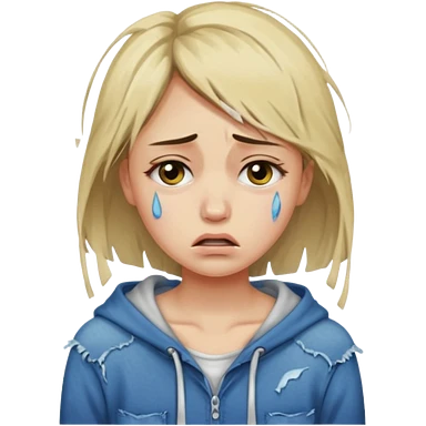 Mulher jovem chorando muito com as roupas rasgadas emoji