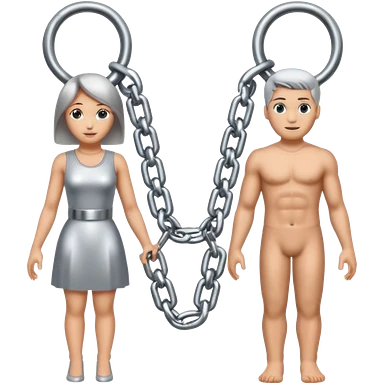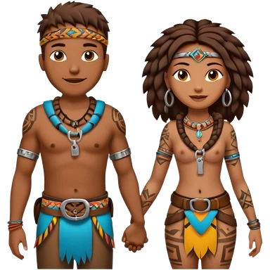 A happy tribal man holding hands with a happy tribal woman wearing a belt with a padlock emoji