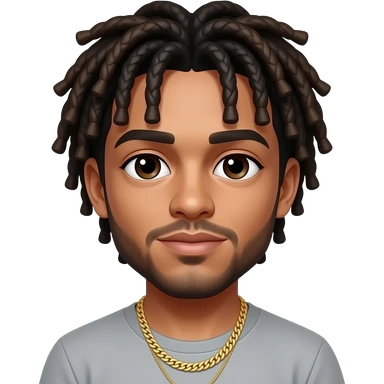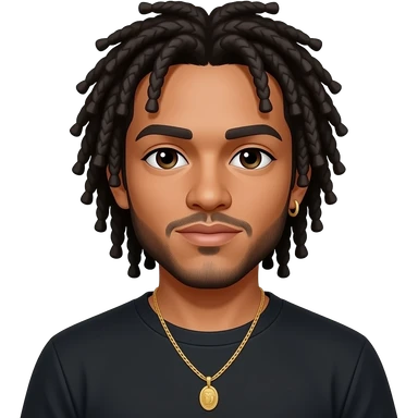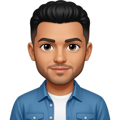He has dark hair, often styled short or with a fade, and sometimes dyed. His eyes are dark, though he occasionally wears blue contact lenses. He has a smooth, medium-brown skin tone, a well-groomed beard, and a confident smile that stands out. emoji