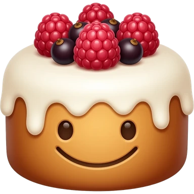 Улыбыющийся панеттоне с белой глазурью и украшением сверху из малины, смородины, emoji