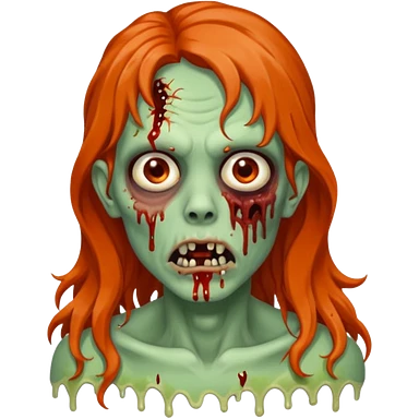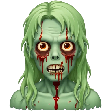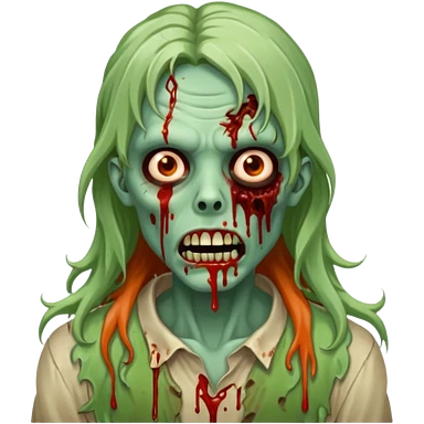 Faça com aparência de zumbi, sagrando na boca, cabelo ondulado no ombro marrom meio alaranjado nas pontas emoji