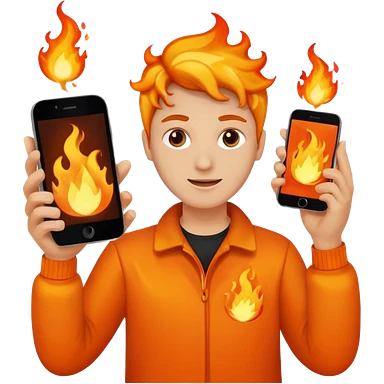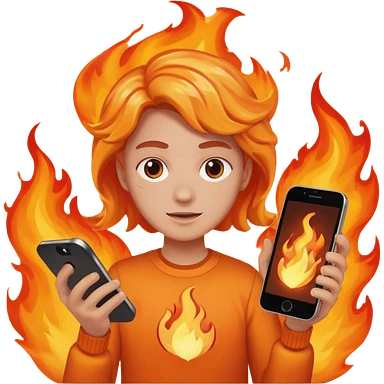 una fuego que tenga en la mano un telefono emoji