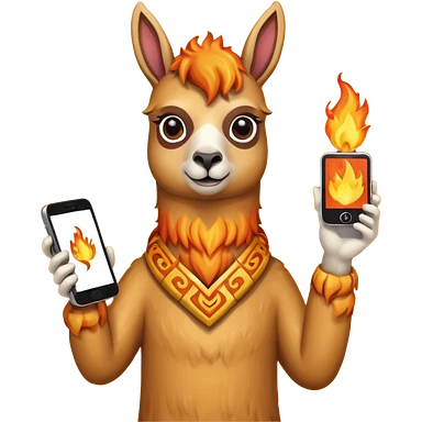 una llama de fuego que tenga en la mano un telefono emoji