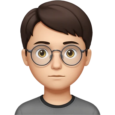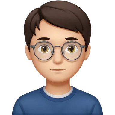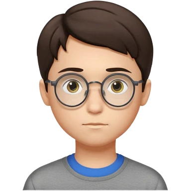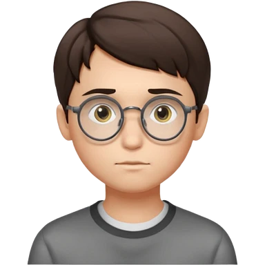 BRUNETTE teen boy with medium short middle parted hair, GREY eyes, round Glasses looking judging to the Side emoji