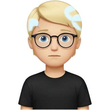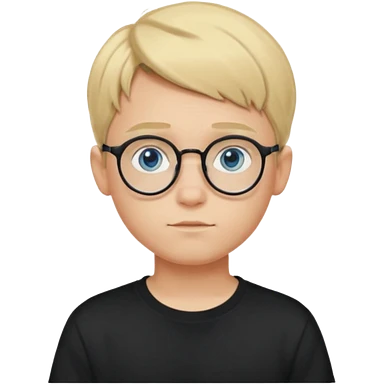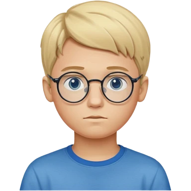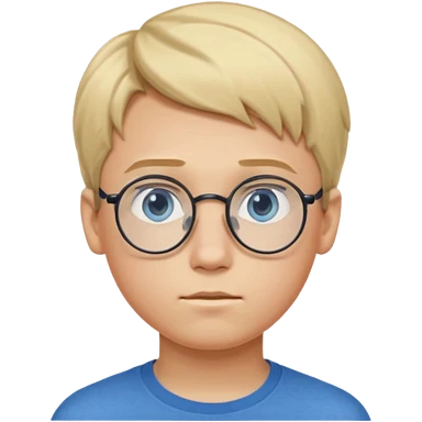 Blonde teen boy with medium short middle parted hair,blue eyes, round Glasses looking judging to the Side emoji