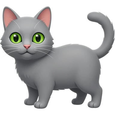 Pisica gri cu ochi verzi și fata rotundă emoji