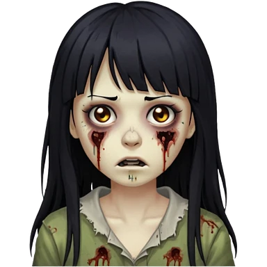 Zombie woman with long black hair and bangs, a nose piercing, and brown eyes. emoji