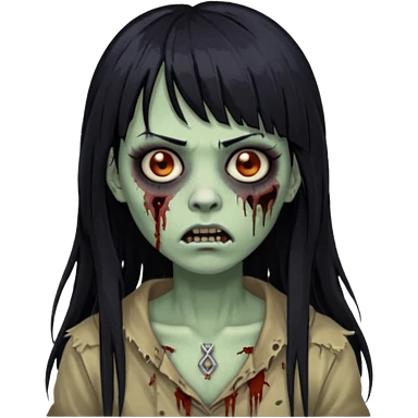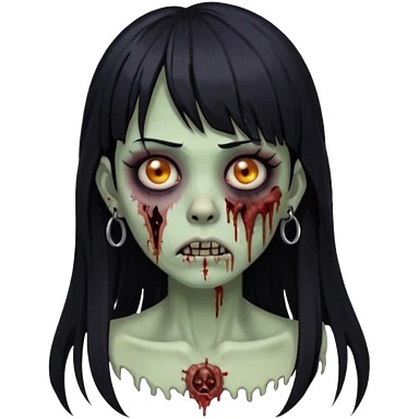 Emoji de zumbi mulher de cabelo comprido preto franja e piercing no septo emoji