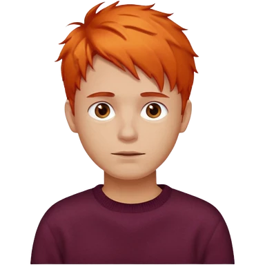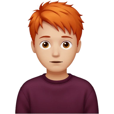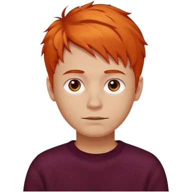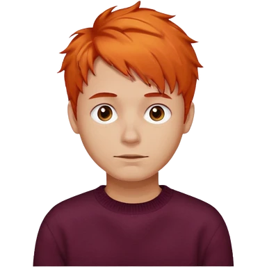 A guy with orange hair, short and messy, dark brown eyes, with a burgundy sweater emoji