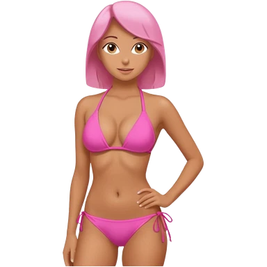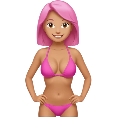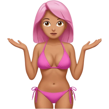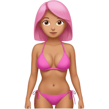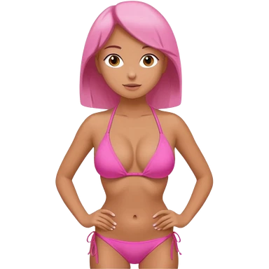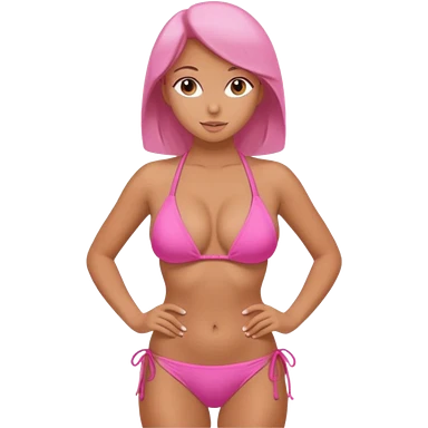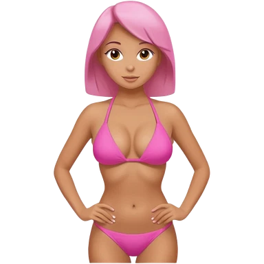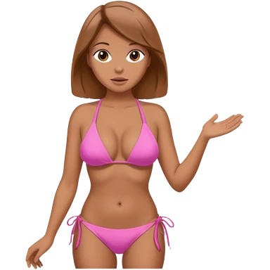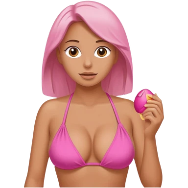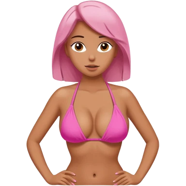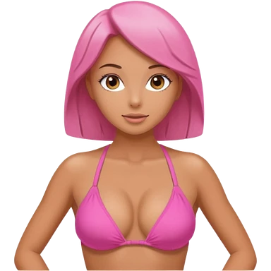 Lady with huge boobs, in a tight bikini, tanned, boobs are so big they are struggling to be contained in tight pink and very revealing bikini emoji
