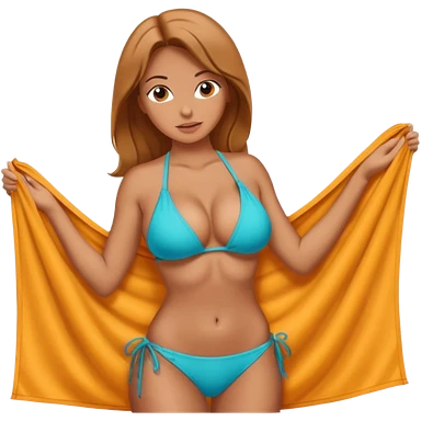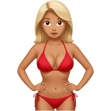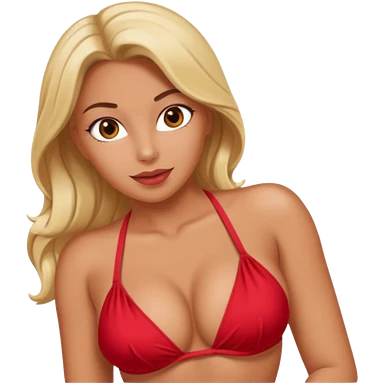 Lady with huge boobs, in a tight bikini, tanned emoji
