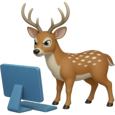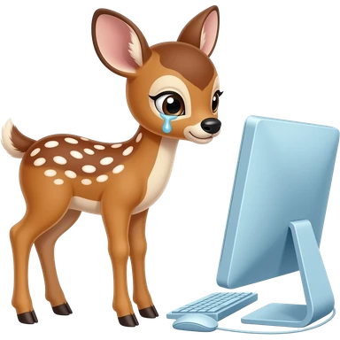 a deer who cries looking at a blue computer emoji