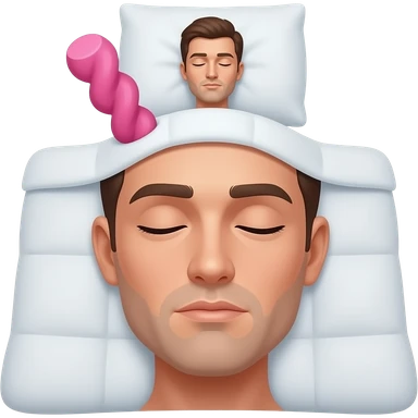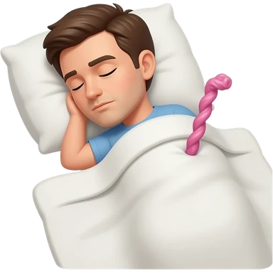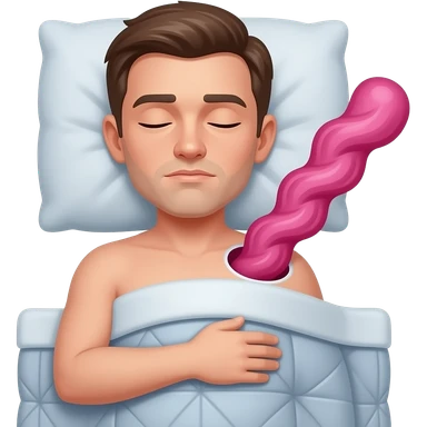 A man sleeping with a pink wrinkled stick coming out his blanket emoji