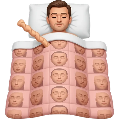 A man sleeping with a pink wrinkled stick coming out his blanket covered with human skin emoji