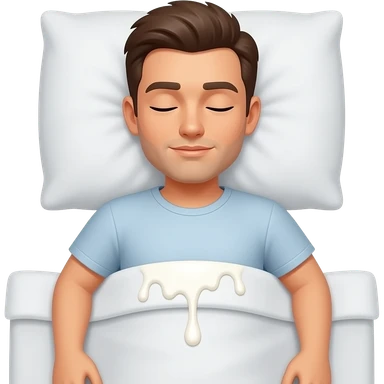 A man sleeping with a peach wrinkled stick coming out his blanket covered with human skin emoji