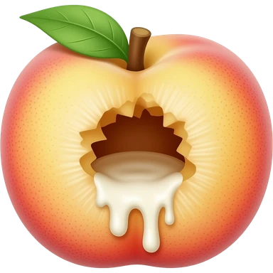 Make a peach emoji with a oval hole and white cream dripping out of it emoji