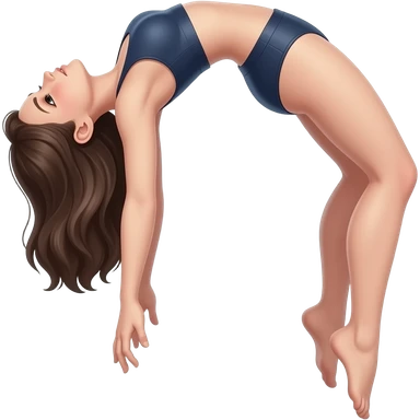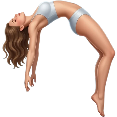 A girl levitating in space, body arched backward in a bridge-like pose, head tilted back, arms hanging loosely, legs slightly bent and relaxed emoji