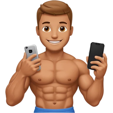 Mec musclé avec un téléphone dans les mains qui navigue sur so téléphone emoji