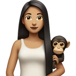 monkey on shoulder of girl with dark brown long straight hair emoji